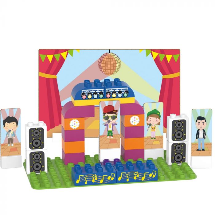 Das lehrreiche und lustige Spielset Karaoke enthält 27 Bausteine, 9 Express-Karten mit neuen Charakteren, wie dem DJ und unseren berühmten Popstars, und einen brandneuen Hintergrund. Kinder trainieren spielerisch und kreativ nachhaltige Lebenskompetenzen. Mit diesem Set erfahren Sie als Eltern, wie die Bauklötze die Entwicklungsmeilensteine Ihrer Kleinen unterstützen, wie z.B. das Erlernen von Farben, Formen und vielem mehr. Die BiOBUDDi-Spielzeugsets eignen sich perfekt für die Entwicklung früher Konstruktions- und Rollenspielfähigkeiten bei Kindern im Alter von 1½ bis 6 Jahren, wobei die Bausteine speziell so konzipiert sind, dass sie sicher für kleine Hände sind. Jedes Modell ist einfach zu bauen und hilft Ihrem Kind, beim Spielen zu lernen.