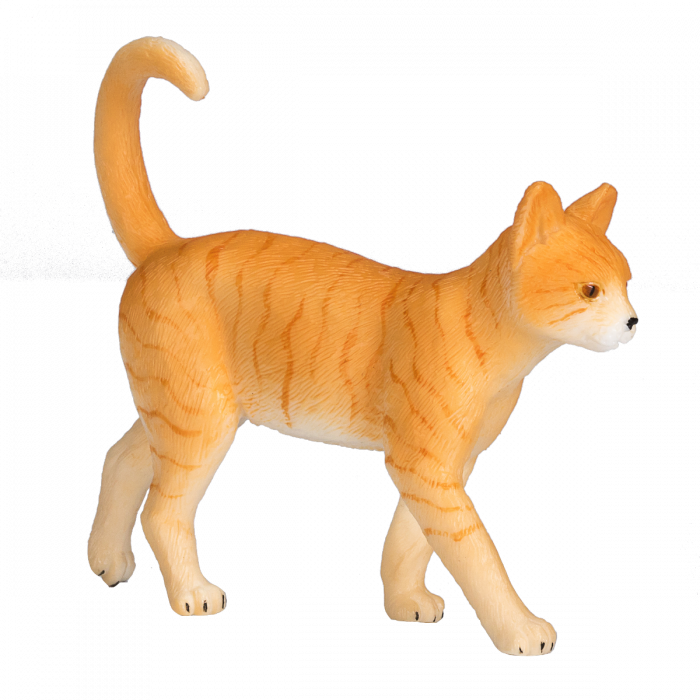 Dies ist eine süße und detailreiche Figur eines geliebten Haustiers. Die Katze hat eine naturgetreue Fellstruktur mit dem charakteristischen orangefarbenen Streifenmuster (Tabby) und ein neugieriges, verspieltes Wesen.