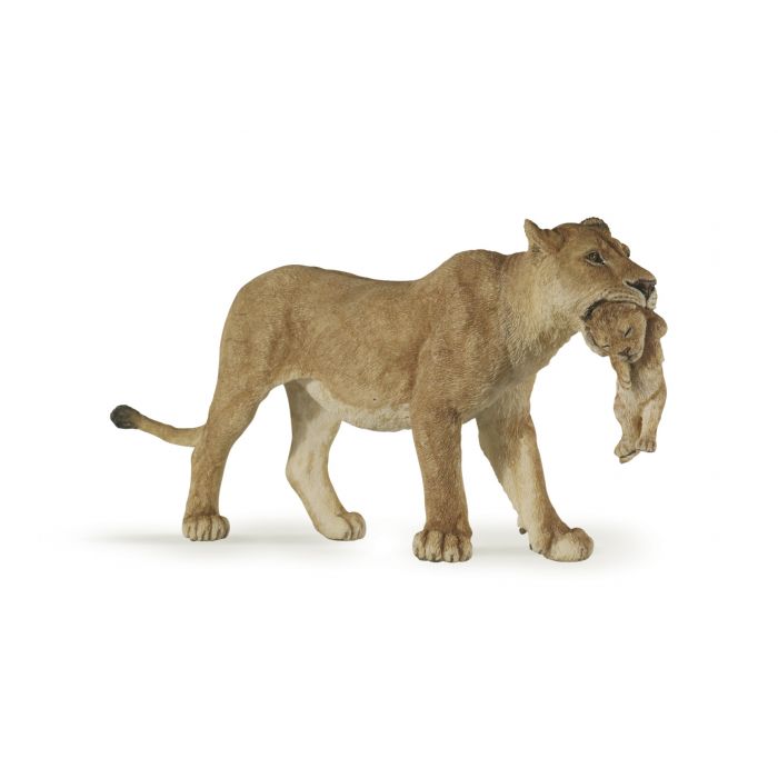 | Produktbeschreibung | Es handelt sich um eine detailreich und realistisch gestaltete Spielfigur, die eine Löwin zeigt, die ihr Junges im Maul trägt. |