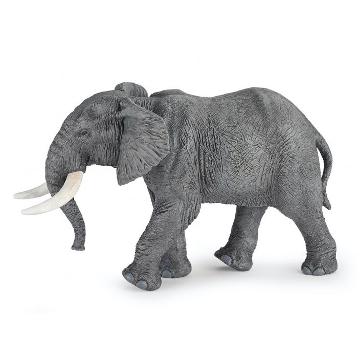 Dies ist eine detaillierte und lebensechte Spielzeugfigur, die einen erwachsenen afrikanischen Elefanten darstellt. Die Figur zeigt einen afrikanischen Elefanten mit großen Ohren, einem langen Rüssel und Stoßzähnen, was für eine naturgetreue Darstellung sorgt.