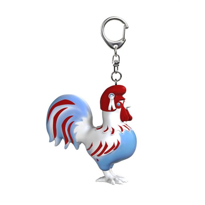 Dies ist ein farbenfroher Schlüsselanhänger in Form eines kleinen Hahns, dem Nationalsymbol Frankreichs. Dieser Schlüsselanhänger ist handbemalt in den blau-weiß-roten Farben der französischen Flagge.