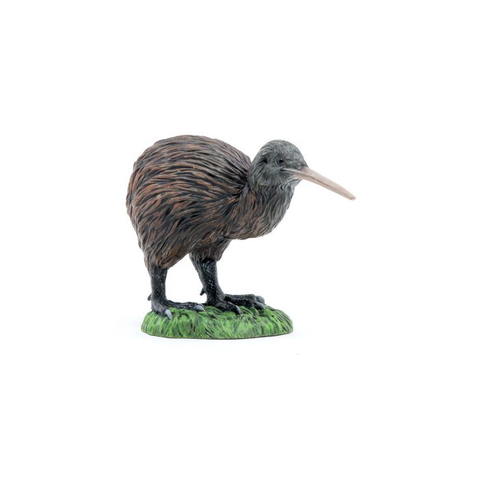 Dies ist eine detaillierte und realistische Figur eines Kiwis. Die Figur zeigt einen Kiwi mit seinem charakteristischen runden Körper, dem langen Schnabel und den flauschigen Federn.